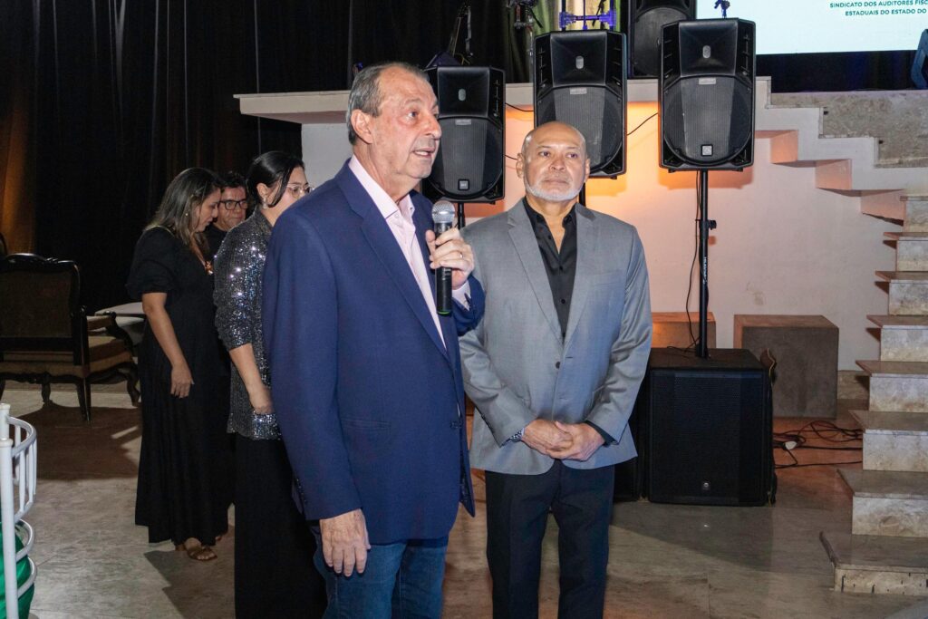 Um dos pontos altos do evento foi a entrega do Diploma de Reconhecimento Fiscal, concedido aos auditores que se aposentaram entre setembro de 2024 e agosto de 2025. Entre os homenageados, estavam os auditores Almeron Caminha Neto e Risonaldo de Melo Lima.